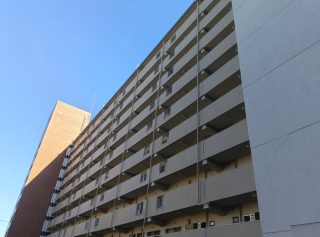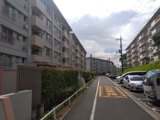 写真のような大きな棟を見上げると、各フロアの横一列に渡り通路が走り、各世帯の入口の鉄扉が整然と並んでいます。正面から見るとその様子は圧巻です。そして、今はだいぶ静かなその鉄扉の向こう側には、それぞれの世帯独自のストーリーがあるはずです。人々は大きな期待を寄せてこの地に住まい、子を産み、育て、彼女ら彼らは巣立ち、残された親世代はそこで老い、静かに亡くなっていく。これは生命の循環であり、人生の摂理です。